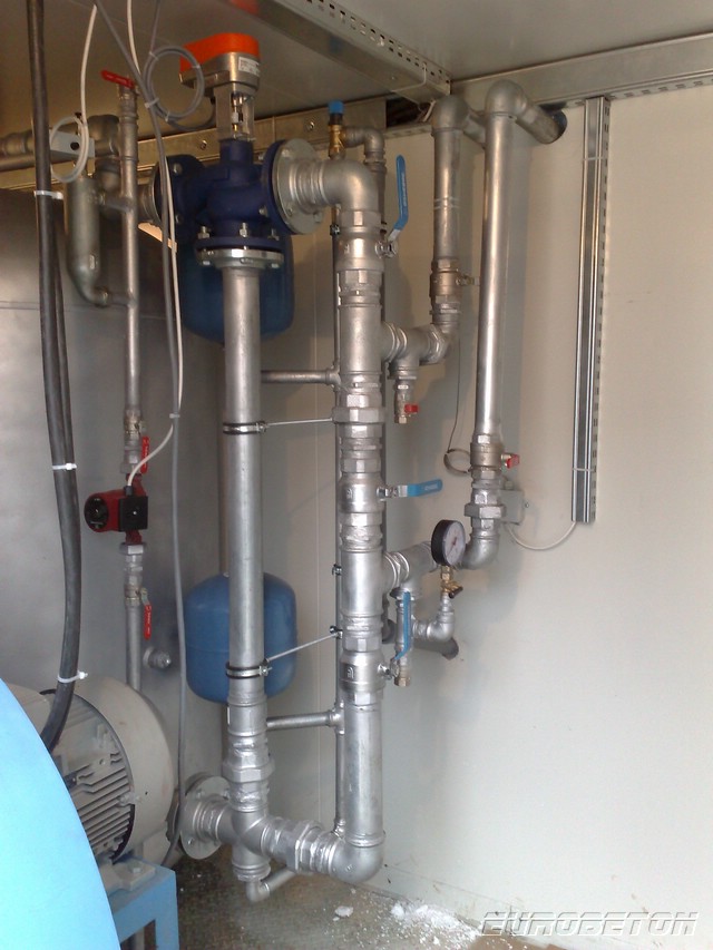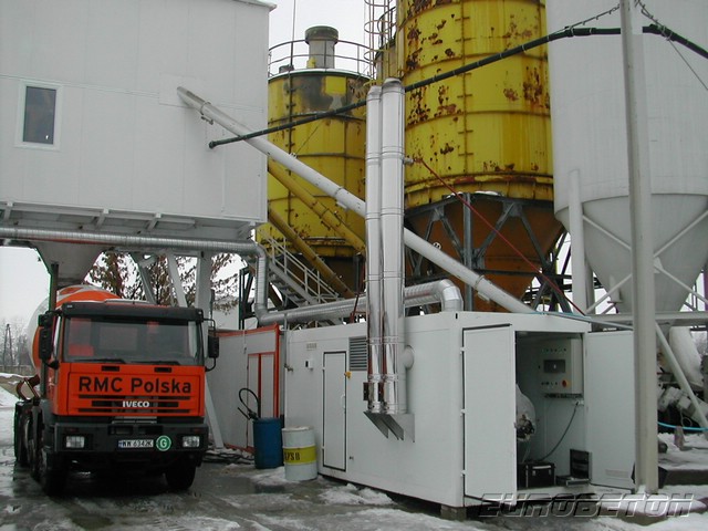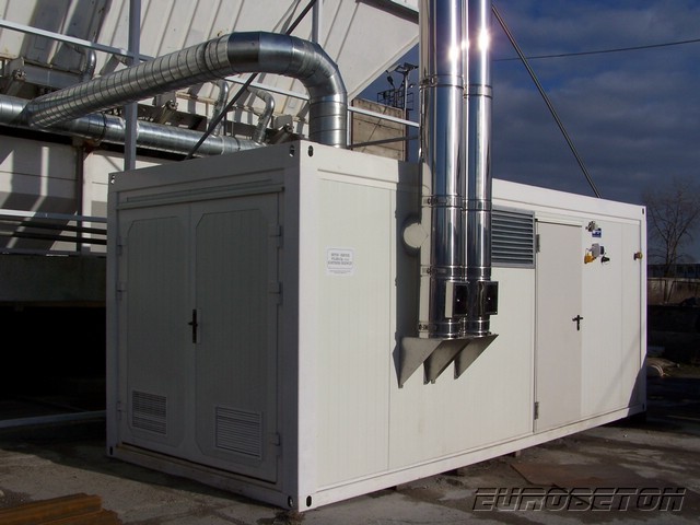 This device, manufactured by our company, is intended for generating hot air to heat aggregate and usable water. It is installed inside a closed, ventilated container made of insulated plates. The container power consumption is 15 kilowatts and it is heated with fuel oil or gas. Capacity:
